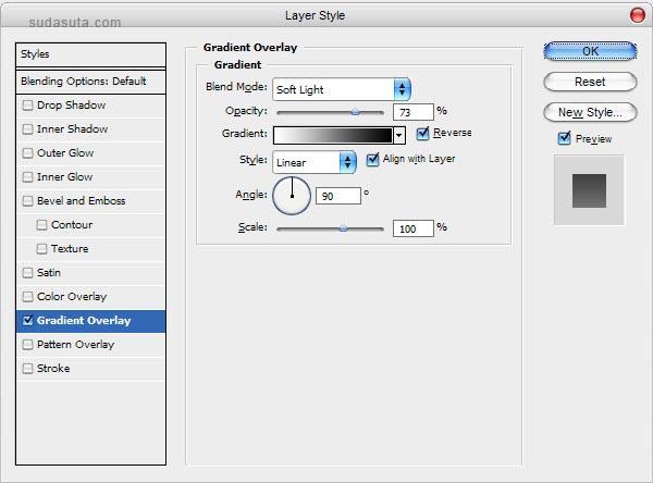双击图层面板中的该图层缩略图,弹出图层属性面板,设置渐变叠加。参数如下图。
