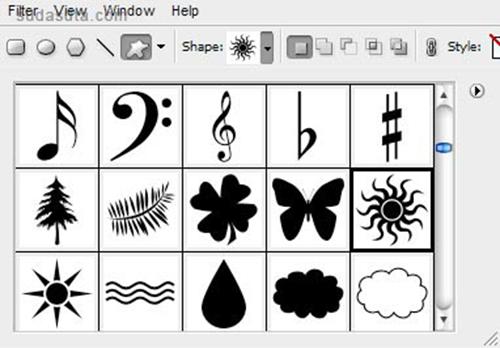 好了,头部的部分我们就已经完成了。我希望给我们的banner添加更多的设计元素。选择用户自定义形状,选择一个photoshop里面自带的一个形状,如下图。