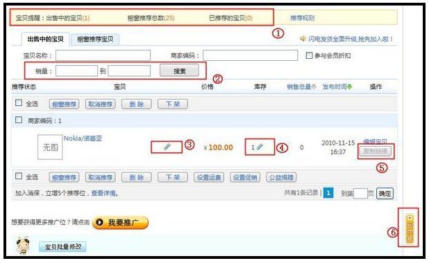 2、刚修改的宝贝会有一个滞后期才能显示更新,如遇修改的宝贝在搜索或店铺中查看到未更新,但点击进去却显示是更新后的情况,建议可耐心等待一会。
