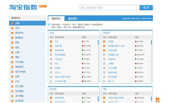 淘宝指数里囊括了淘宝所有的热销类目商品和排行,可以从中查找你的商品的冷热程度,而且还是免费使用。并且可以查到成交排行,这样可以提高商品转化率。