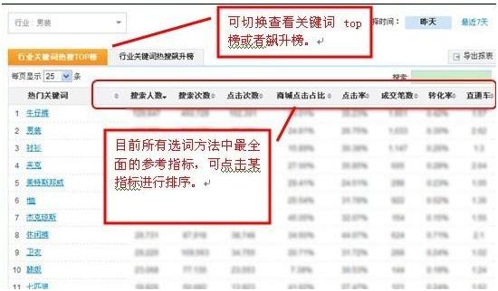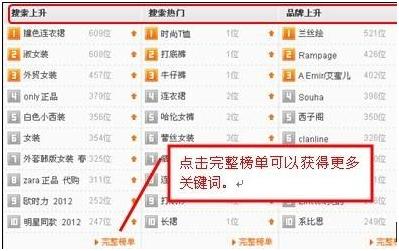 淘宝排行榜整合全网资源,每日给出各个类目下热门搜索词和品牌词,上升的搜索词和品牌词。无论选择关键词还是选宝贝都可参考。排行榜数据基本是每日变化,因此需要每日关注。