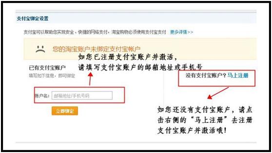 已经注册支付宝账户并且未绑定,请在支付宝账户注册激活后,登录你已注册并激活的淘宝账号。